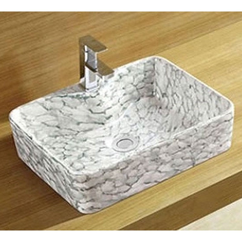 Lavabo artistique de forme carrée avec motif de marbre distinctif, installé en surface, utilisant un émail anti-salissure pour une facilité de nettoyage. Après une longue période de cuisson à haute température, le bassin présente une faible absorption d'eau, une formation monobloc, évitant ainsi les fissures et assurant une solidité durable.