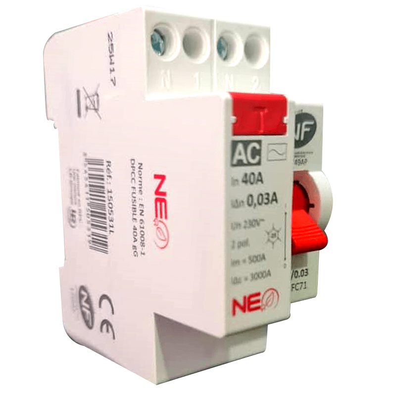 Disjoncteur différentiel 2P, type AC, 30mA, 40A - Neo