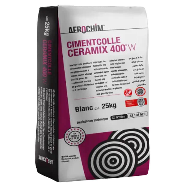 Mortier colle déformable de haute performance, résistant au glissement et à temps ouvert allongé destiné au collage du marbres, granites et pierres naturelles intérieur et extérieur