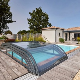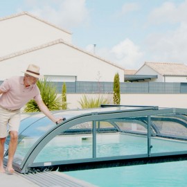 L’abri de piscine bas s’intègre très facilement à son environnement. Sa forme légèrement rehaussée sur le milieu permet des baignades tranquilles et aérées à l’abri du vent. Avec l’abri de piscine bas, vous prolongez le plaisir de baignade grâce à une augmentation de 4 à 6°C de la température de l’eau. Transformez aussi votre piscine en un véritable espace de détente et de loisir pour en profiter 2 à 4 mois de plus.