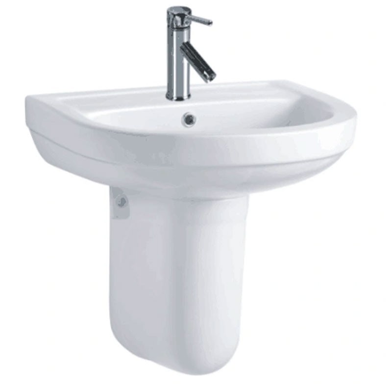 urface émaillée facile à nettoyer, céramique antibactérienne, design simple et élégant. Livré avec un robinet, conçu pour éviter les éclaboussures, pratique et fonctionnel ; conçu avec un trop-plein à l'arrière, adapté à diverses situations. LAVABO +DEMI COLONNE Matière : CÉRAMIQUE